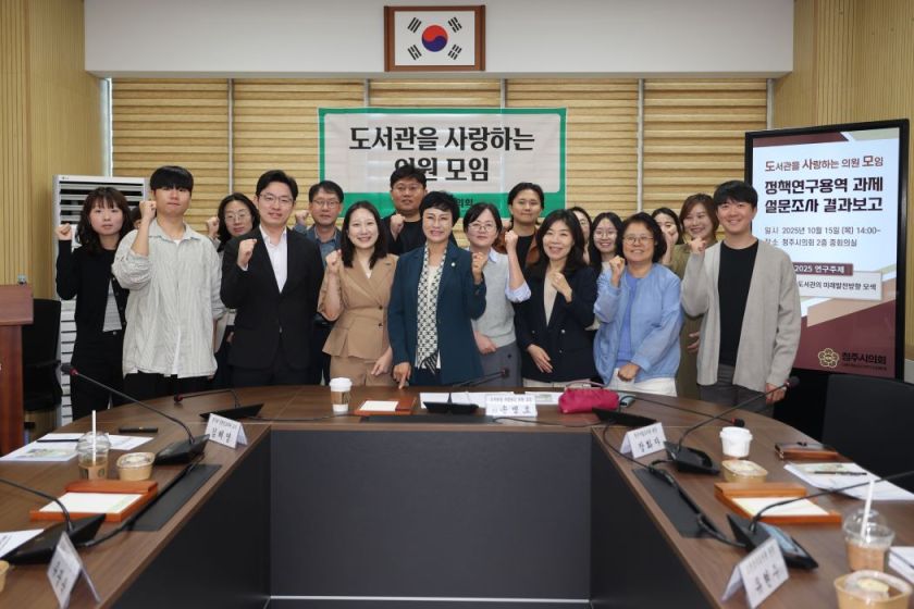 청주시의회 의원 연구단체인 「도서관을 사랑하는 의원 모임(대표 송병호)」은 15일 청주시 공공도서관의 미래발전방향 모색을 위한 설문조사 결과 보고회를 개최했다.