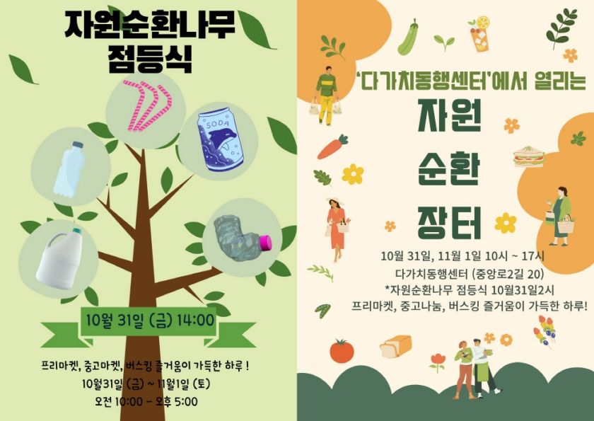 옥천군이 오는 10월 31일부터 11월 1일까지 2일간 다가치동행센터에서‘자원순환나무 점등식’과 ‘자원순환장터’를 개최한다. 이번 행사는 군민이 생활 속에서 자원순환을 직접 실천할 수 있는 기회를 마련하기 위해 추진 됐다.