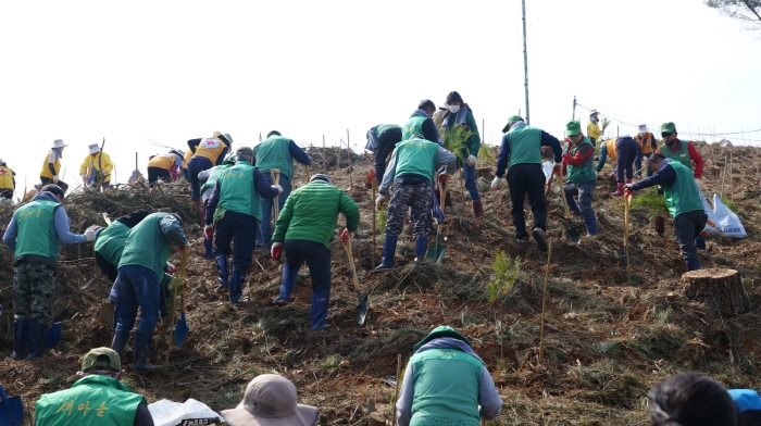 행사에는 농림 및 사회단체, 부여군산림조합, 공무원 등 350여 명이 참여해 2ha 면적에 편백나무 3,000주를 식재했다.
