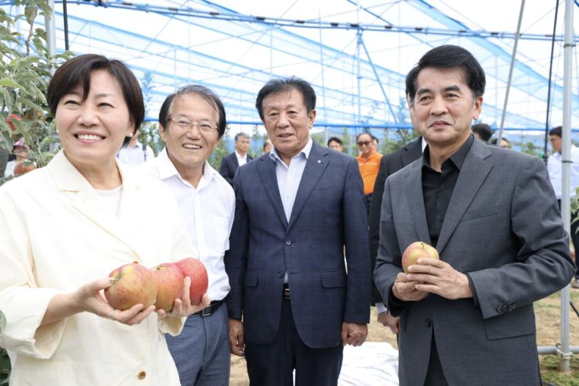 충북 보은군은 22일 송미령 농림축산식품부 장관이 보은군을 방문해 추석 성수품인 사과 생육 및 출하 현황을 점검하고 현장 관계자들을 격려했다.