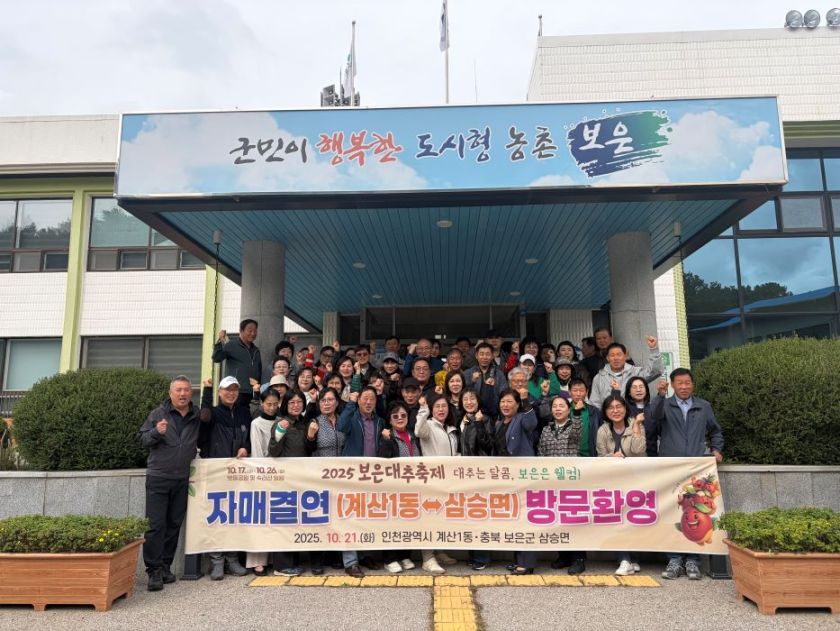 충북 보은군 삼승면은 대추축제 기간인 지난 21일 인천광역시 계산1동 주민자치회가 자매결연 지역인 삼승면을 방문했다고 밝혔다.