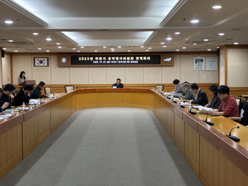 충주시 공약평가위원회(위원장 이규홍)는 지난 12월 12일과 15일, 22일 등 세차례에 걸쳐 민선 8기 충주시장의 2025년 하반기 공약사업 이행실적을 평가하고, 향후 발전 방향 등에 대해 논의했다.