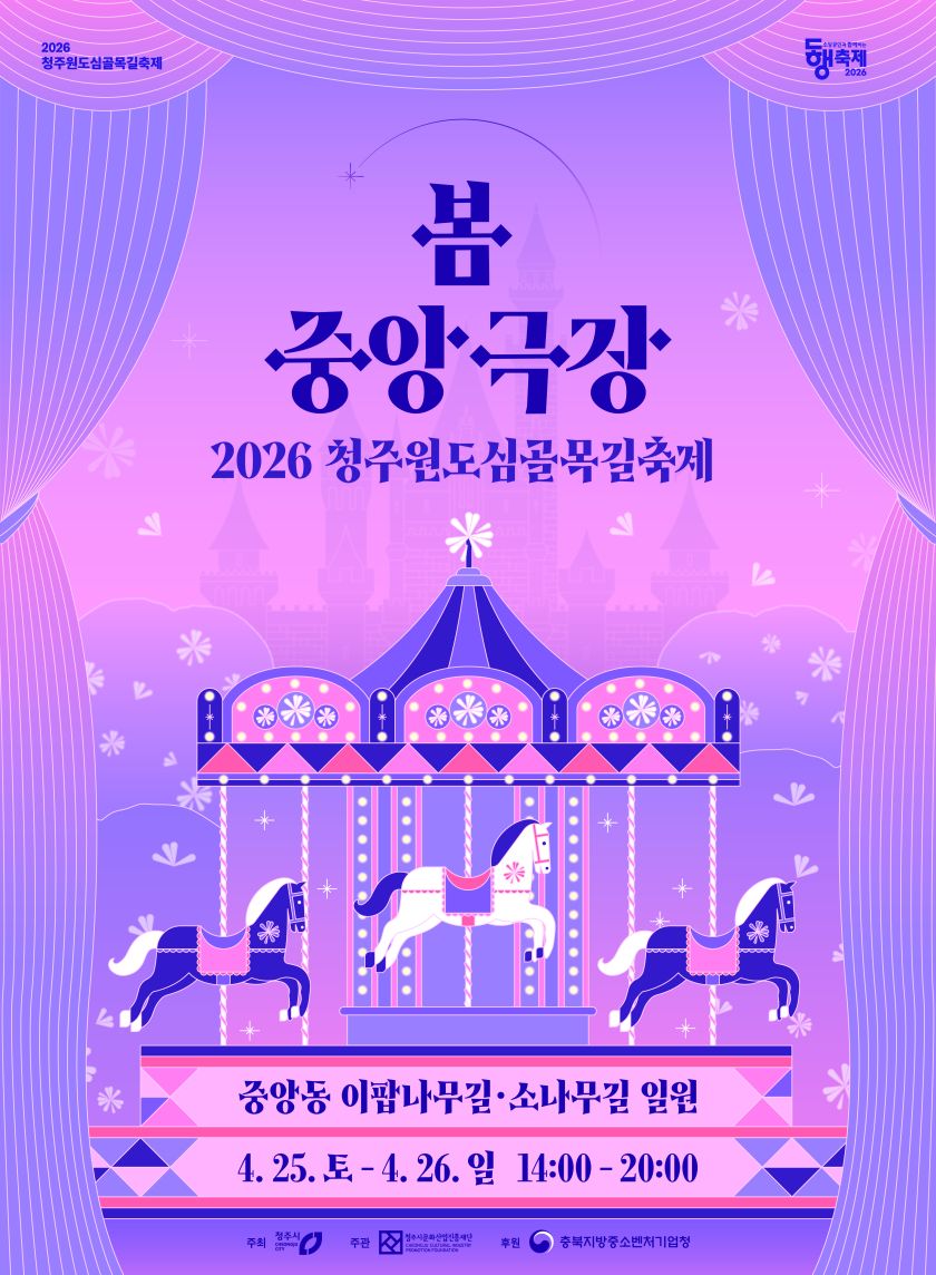 이어 25일 오후 2시부터 26일까지는 중앙동 옛 중앙극장 일원에서 ‘2026 청주원도심골목길축제 봄:중앙극장’이 열린다.